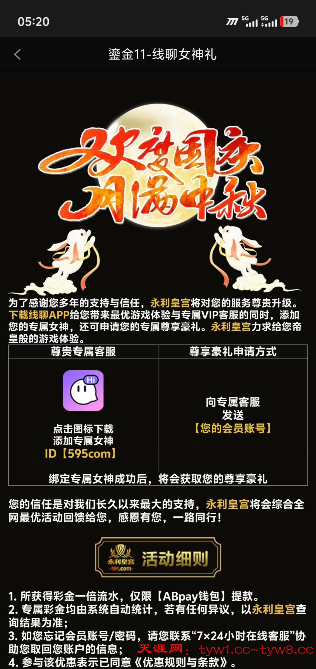 595.com线聊彩金,有充值过100的可以去找客户申请,我只充值过100,给了68