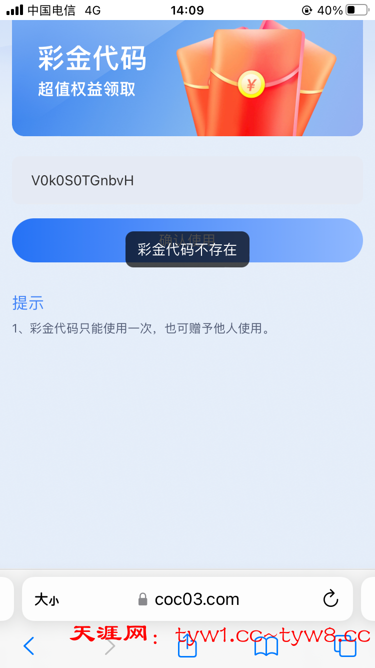 彩金代码不存在怎么回事