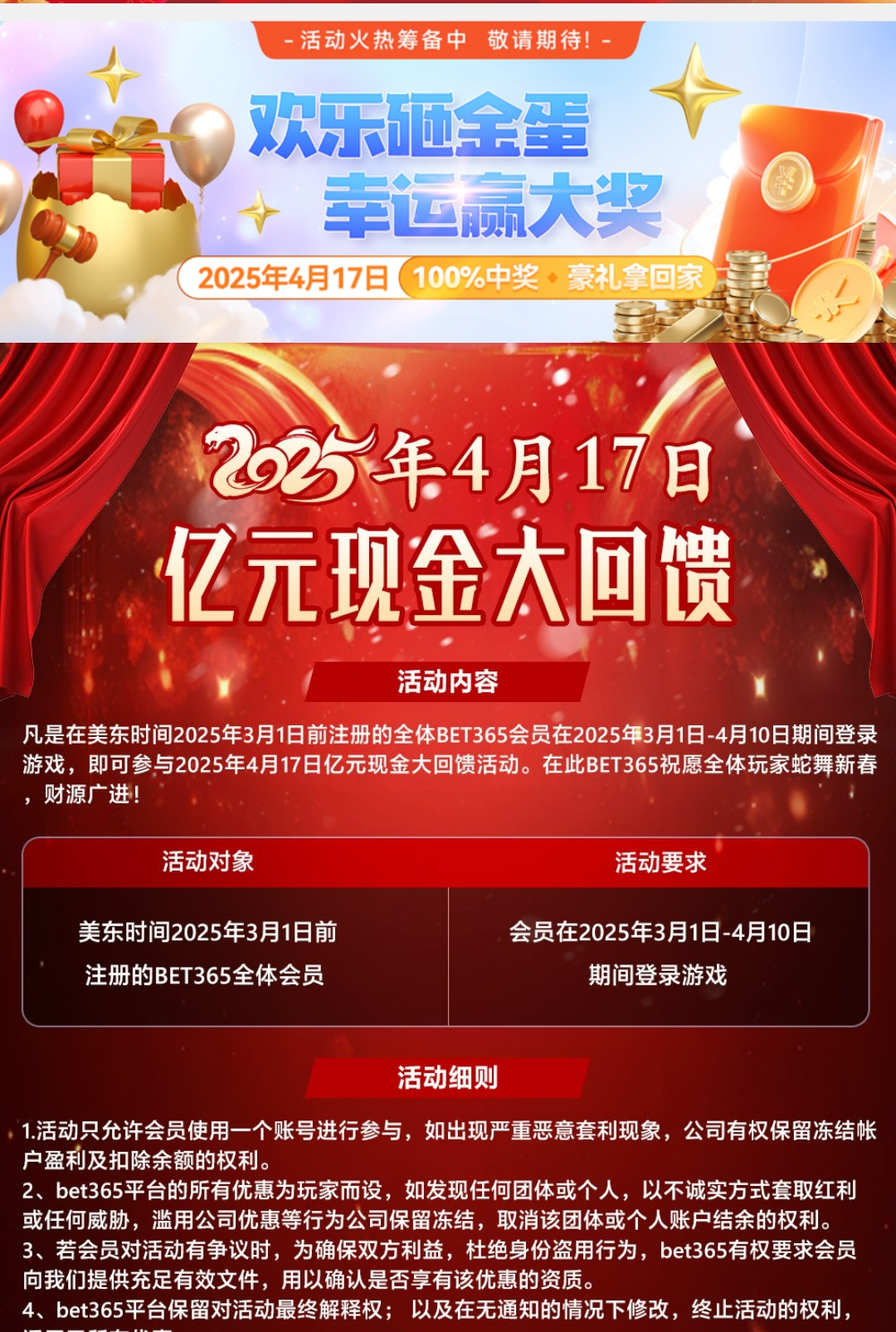 【bet417】老用户砸金蛋活动